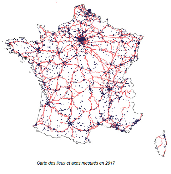 Le périmètre de l’enquête a considérablement été élargi cette année. Dans les zones d’habitation, le nombre de points de mesure a été doublé. S’agissant des axes de transport, la qualité a été mesurée sur l’ensemble des autoroutes et, pour la première fois, sur une vingtaine de grandes routes également. De même, ce sont tous les TGV et Intercités qui ont fait cette année l’objet de mesures, et plus de 60 TER. Enfin, l’Arcep a mesuré la qualité dans l’ensemble des métros en France, dont, pour la première fois, les métros de Lille, Lyon, Marseille, Rennes et Toulouse.