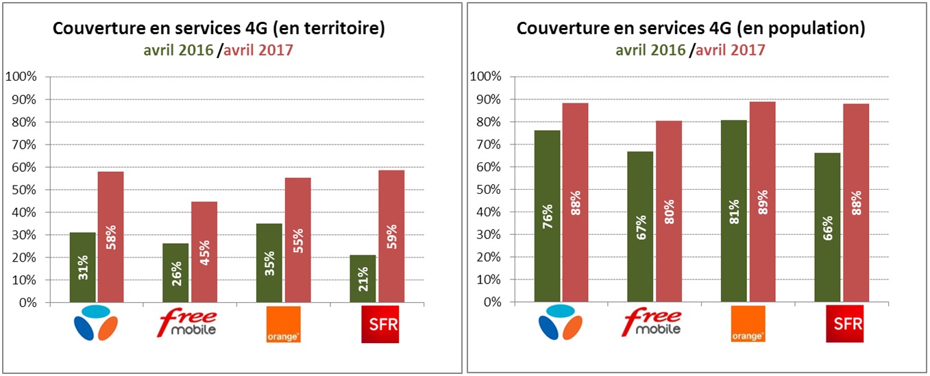 Si les résultats font écho aux efforts des opérateurs pour poursuivre l’extension de leur couverture en service 4G, à ce jour, aucun opérateur ne couvre plus des deux tiers du territoire avec cette technologie : l’Autorité veillera donc à ce que les opérateurs maintiennent leurs efforts afin que la 4G bénéficie au plus grand nombre sur l’ensemble du territoire, et que les écarts de performances entre zones rurales et denses se réduisent progressivement.