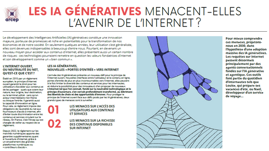 L’impact des services d’IA générative sur la liberté de choix, la richesse des contenus et la capacité d’innovation sur internet - La synthèse (pdf - 1,67 Mo)