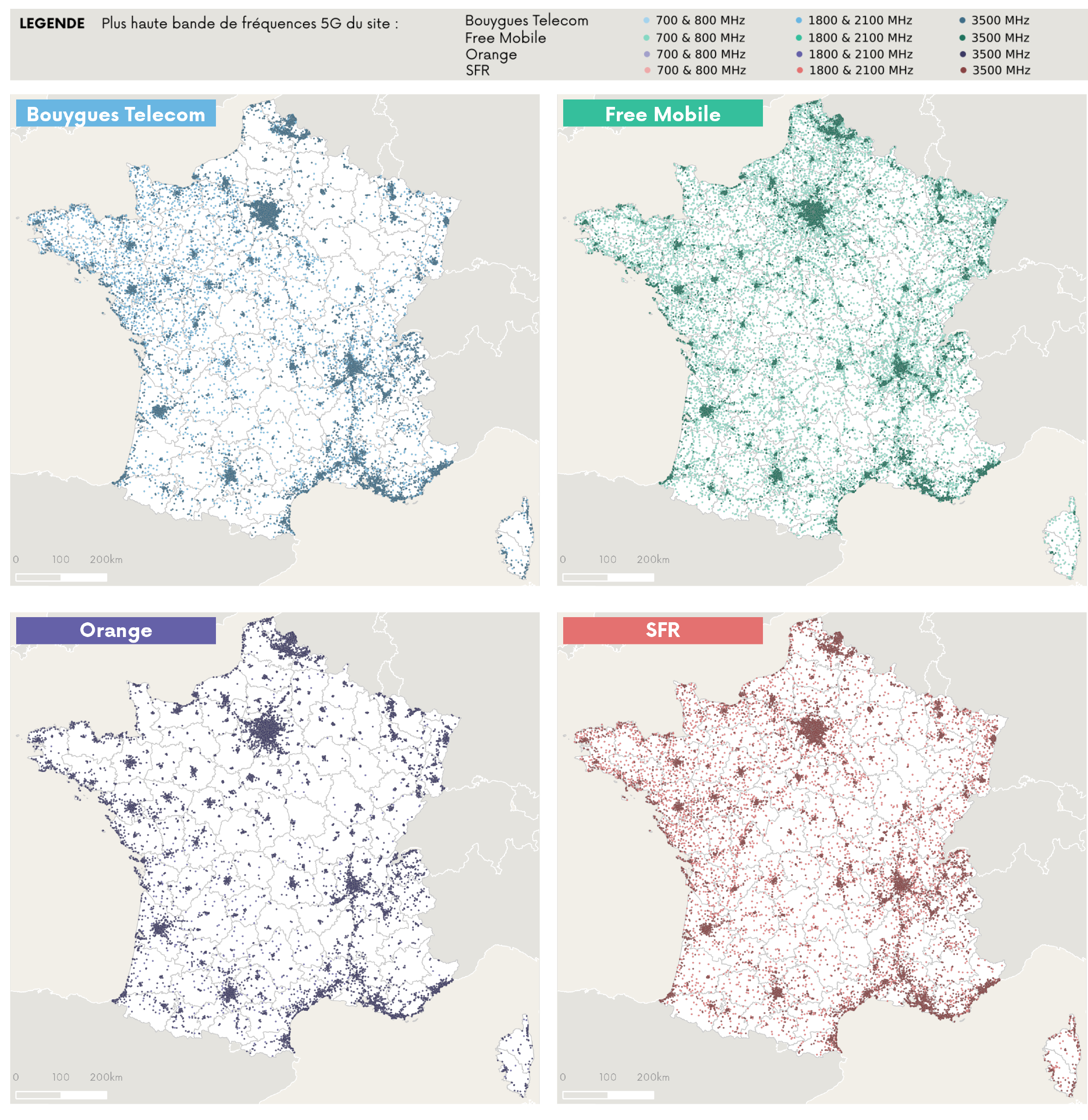 Cartographie des sites 5G ouverts commercialement par opérateur