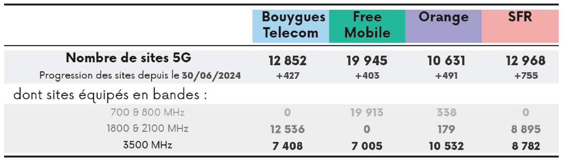 Nombre de sites 5G ouverts commercialement (données au 30 septembre 2024)