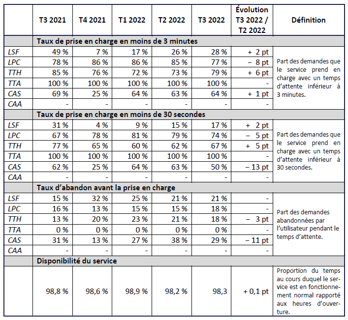Pour rappel, en vertu de l’article D. 98-14 du CPCE, depuis le 1er octobre 2021, le service mentionné à l’article L. 33-1, I, p) du CPCE fonctionne au minimum du lundi au vendredi de 8 h 30 à 21 h, et le samedi de 8 h 30 à 13 h, hors jours fériés[1].