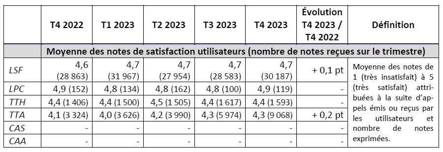 NB : Afin de neutraliser les effets de saisonnalité sur les mesures, les évolutions de mesures et d’indicateurs de qualité sont calculées par rapport à la valeur du même trimestre de l’année précédente