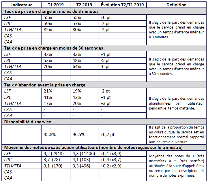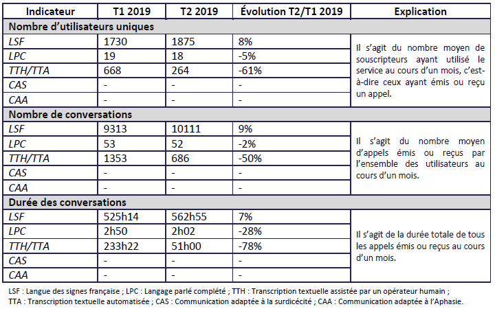 L’Arcep attire l’attention sur le fait que le service est en phase de rodage et, notamment, que certaines prises en charge (aphasie et surdicécité) ne sont pas encore opérationnelles.