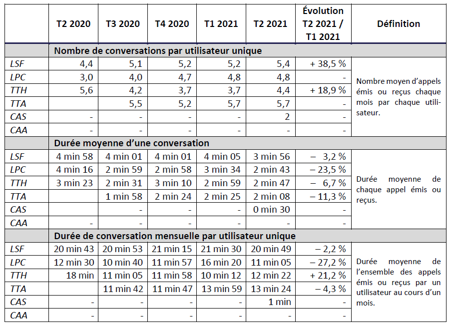 Le présent document est une synthèse des indicateurs mesurés et transmis à l’Arcep, pour le 2ème trimestre 2021, par les opérateurs Bouygues Telecom, Euro-Information Telecom, Free, Free mobile, La Poste Mobile, Outremer Telecom, Orange, Orange Caraïbes, SFR, SRR, ainsi que (depuis le T1 2021) : Coriolis, Digicel Antilles françaises-Guyane.