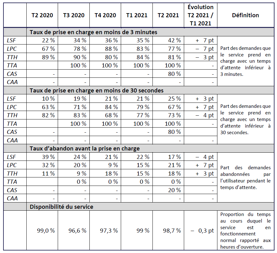 Pour rappel, en vertu de l’article D. 98-14 du CPCE, jusqu’au 30 septembre 2021, le service mentionné à l’article L. 33-1, I, p) du CPCE fonctionne au minimum du lundi au vendredi de 8 h 30 à 19 h, hors jours fériés.