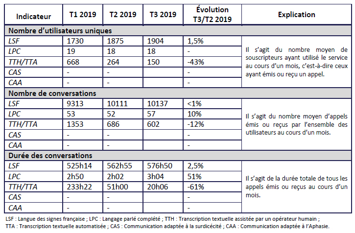 L’Arcep attire l’attention sur le fait que le service est en phase de rodage ainsi que sur le faible nombre d’utilisateurs ayant recours au langage parlé complété (LPC).