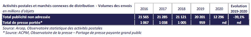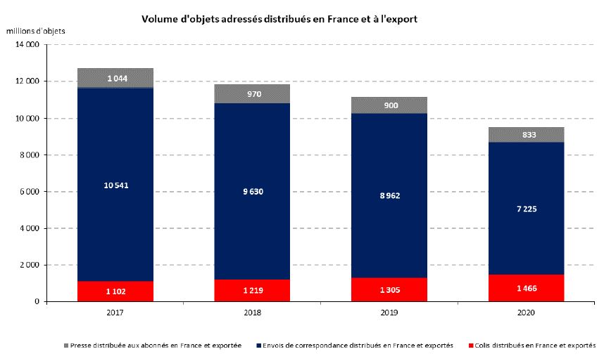 En volume comme en revenu, la crise sanitaire accélère le recul structurel du marché du courrier adressé distribué en France ou exporté.