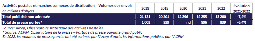 La réduction structurelle de la distribution de courrier et de presse se poursuit.