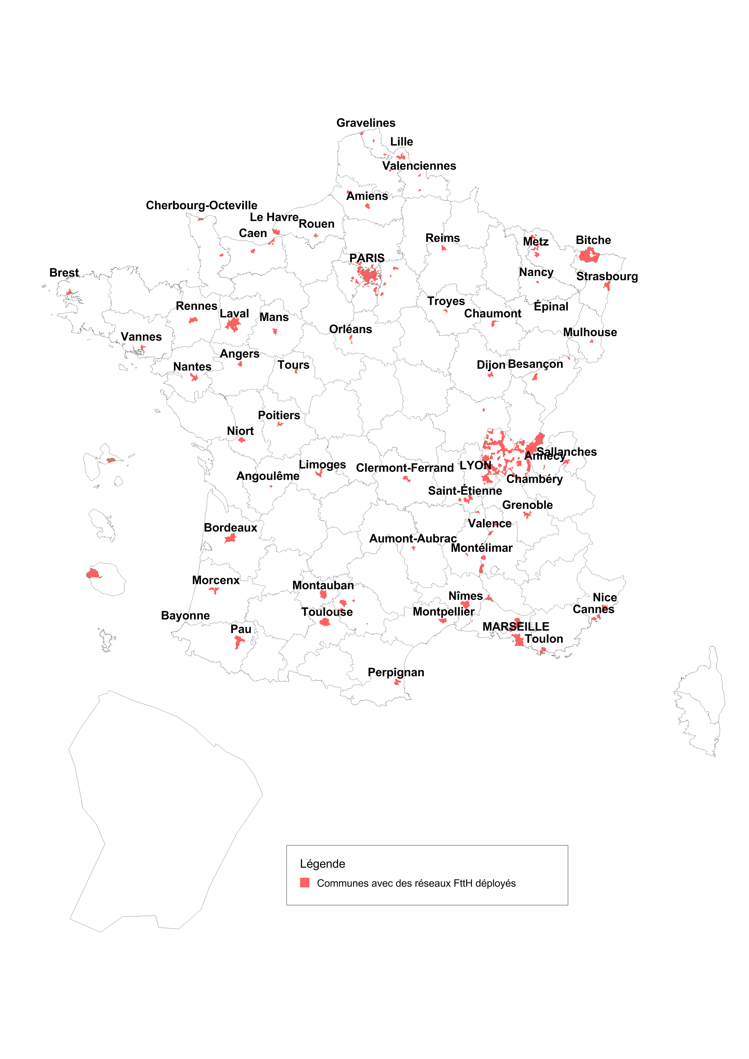 Le nombre total de logements éligibles aux offres à très haut débit (supérieur ou égal à 30 Mbit/s) toutes technologies confondues, s'élevait au 30 septembre 2013 à environ 9,1 millions de logements, dont 3,7 millions se situent en dehors des zones très denses. Il est important de signaler que certains de ces logements peuvent bénéficier de deux accès au très haut débit, l'un par un réseau en câble coaxial et l'autre par un réseau FttH.