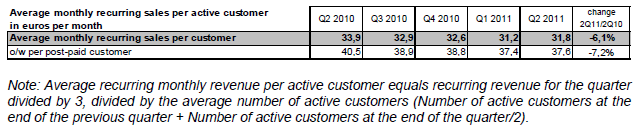 Note : le revenu mensuel moyen récurrent par client actif est égal au revenu récurrent du trimestre considéré divisé par 3, rapporté au parc de clients actifs moyen ((Parc de clients actifs de la fin du trimestre précédent + Parc de clients actifs de la fin du trimestre considéré)/2).