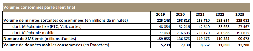 La segmentation pratiquée dans ces publications rattache, par convention, l’ensemble des revenus des offres multi services à l’internet et ne rattache aux revenus de la téléphonie fixe que les revenus qui lui sont directement attribuables.