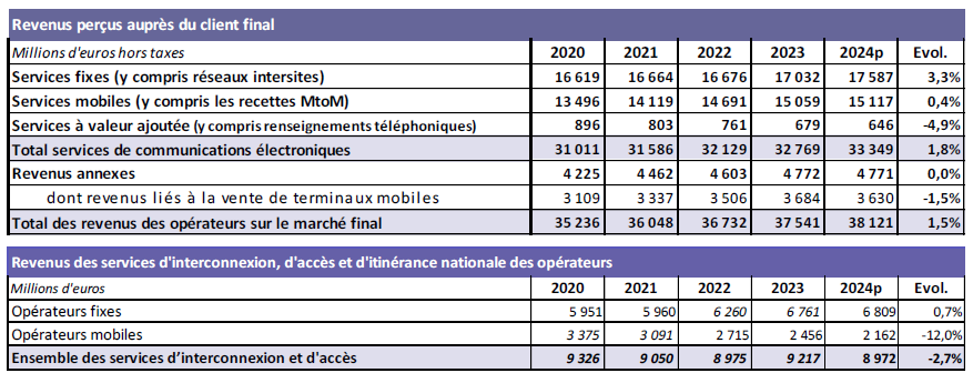 Le revenu des opérateurs sur le marché de détail progresse de 1,5 % en 2024.