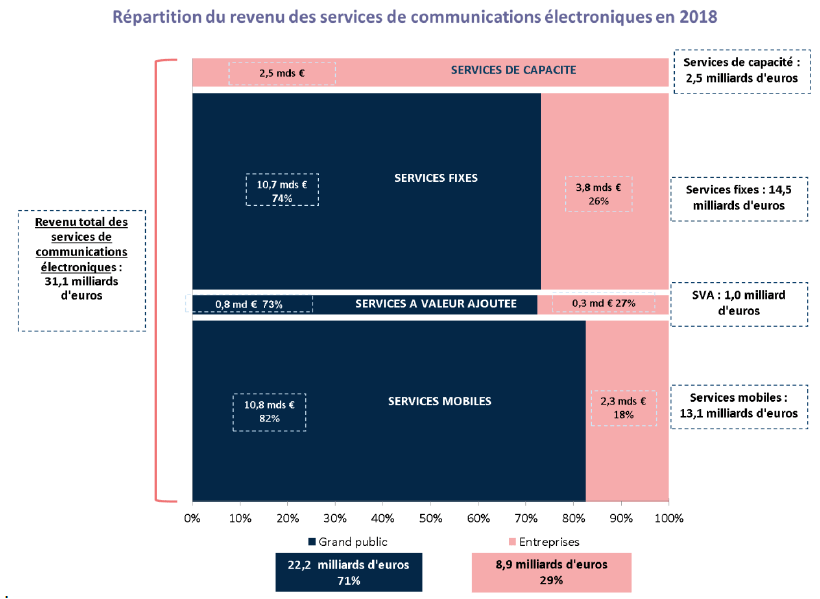 • Pour plus de détail sur le marché des entreprises, voir la publication de l’Arcep « Le marché des services de communications électroniques en ENTREPRISE (pdf - 1,08 Mo) »