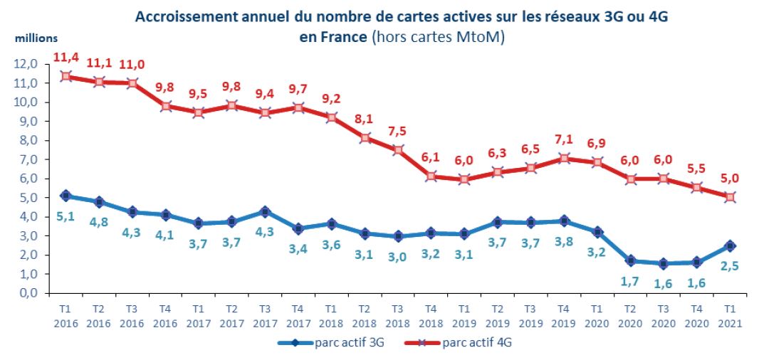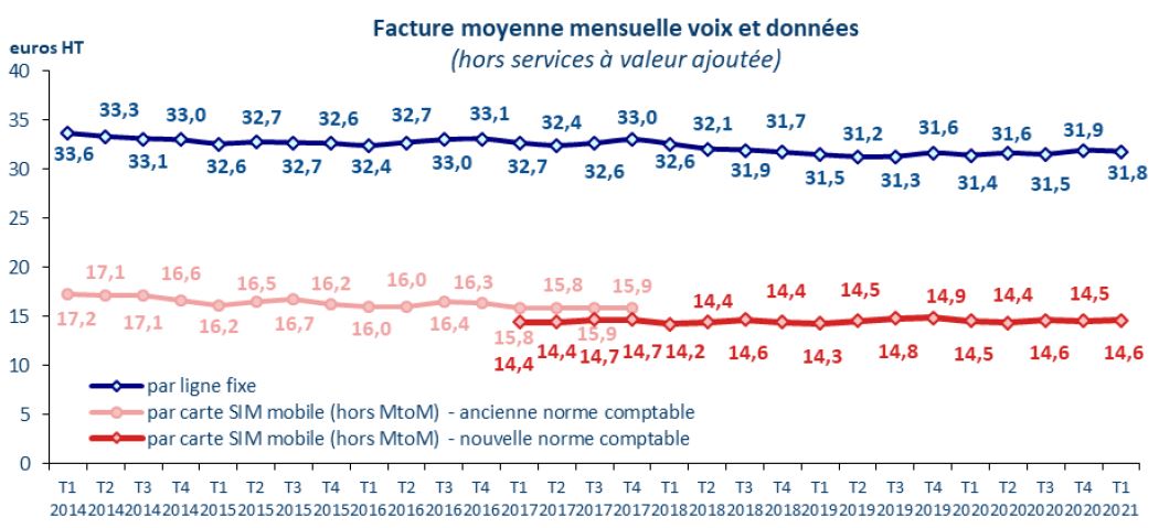 Le revenu des opérateurs sur le marché de détail augmente de près de 2% en un an au premier trimestre 2021, un rythme de croissance inégalé depuis plus de dix ans.