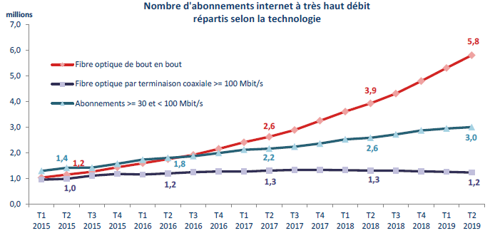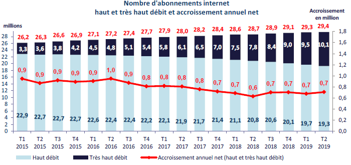 Le nombre d’accès à très haut débit dépasse les 10 millions fin juin 2019 |