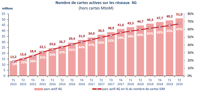 Avec 1,9 million d’abonnements supplémentaires en un an, le nombre d’accès FttH atteint 5,8 millions fin juin 2019, soit près de quatre locaux sur dix éligibles au FttH