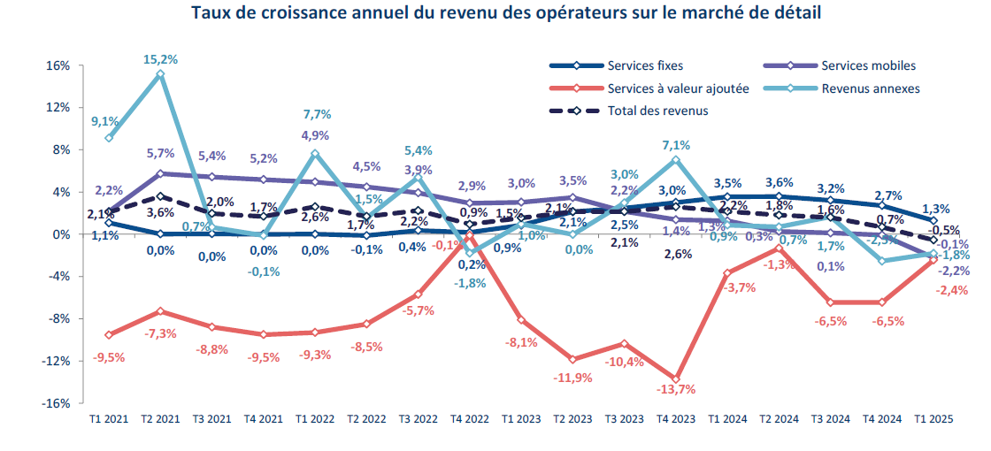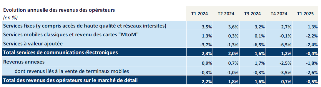 Après quatre années de croissance, le revenu des opérateurs diminue légèrement au premier trimestre 2025.