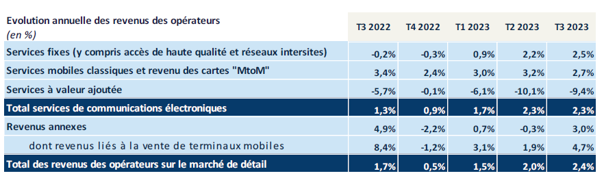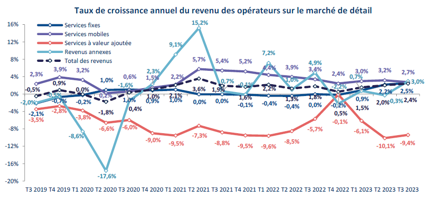 Le revenu des opérateurs sur le marché de détail progresse à un rythme annuel d’environ + 2 % depuis 2021, après dix années de recul.