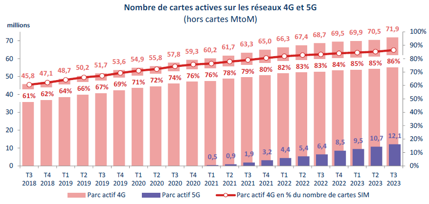 Plus de 12 millions de cartes SIM ont été utilisées sur les réseaux 5G[1] au cours du troisième trimestre 2023.