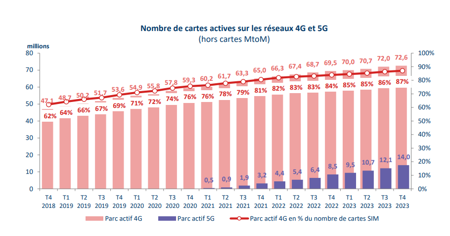Au 31 décembre 2023, 14 millions de cartes SIM ont été utilisées sur les réseaux 5G[1].