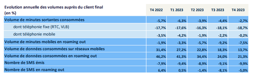Les clients des opérateurs mobiles ont consommé 3,5 exaoctets de données et plus de 50 milliards de minutes au cours du quatrième trimestre 2023.