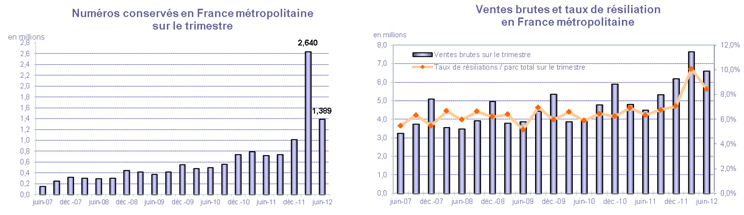 (10) Le taux de résiliation post-payé trimestriel est le rapport entre les résiliations post-payé du trimestre et le parc moyen post-payé sur la période (demi somme des parcs post-payé en début et en fin de trimestre). Le taux de résiliation prépayé trimestriel est le rapport entre les résiliations prépayé du trimestre et le parc moyen prépayé sur la période (demi-somme des parcs prépayé en début et en fin de trimestre). A noter qu'une résiliation se définit comme un client de l’opérateur en début de trimestre dont l’enregistrement au HLR a été effacé au cours du trimestre. Les modifications de l’enregistrement au HLR ne constituent pas, en particulier, des résiliations. Cette définition ne recouvre donc ni les changements d’offres au sein de la gamme, ni les migrations prépayé vers post-payé ou post-payé vers prépayé, ni les suspensions de services.