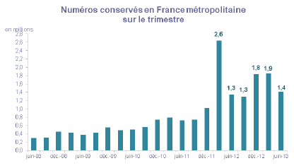 (1) Opérateurs de réseaux mobiles de métropole : Orange France, Société Française du Radiotéléphone (SFR), Bouygues Telecom, Free mobile et MVNO actifs contrôlés par les opérateurs de réseaux : BuzzMobile, Carrefour mobile, Darty Mobile, E-plus (KPN France), France Télécom et Joemobile.
