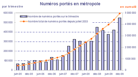 (11) Le nombre de numéros portés est calculé comme la demi somme des volumes de numéros relatifs à des portages "in" et à des portages "out" réalisés par l'ensemble des opérateurs. On entend par portage "in" un portage effectif du point de vue de l'opérateur receveur et par portage "out" un portage effectif du point de vue de l'opérateur donneur.