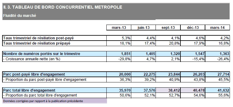 Les données trimestrielles relatives aux chiffres d'affaires et aux trafics seront publiées le 3 juillet 2014 dans l'observatoire trimestriel des marchés des communications électroniques en France (résultats définitifs - services fixes et mobiles, parcs, revenus et trafics) à l'adresse suivante : http://www.arcep.fr/index.php?id=36