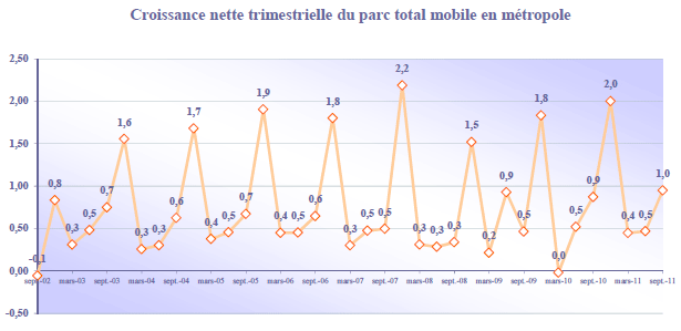 (12) Le parc actif multimédia est défini par l'ensemble des clients ayant utilisé au moins une fois sur le dernier mois un service multimédia de type Internet mobile (Wap, I-Mode, Vodafone live, Orange World, etc.) ou, en émission, de type MMS ou e-mail mobile (à l'exclusion, donc, des SMS), et ce, quelle que soit la technologie support (CSD, GPRS, EDGE, UMTS, etc.).