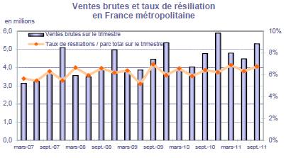 (3) Les ventes brutes sont définies comme les clients de l'opérateur en fin de trimestre dont l'enregistrement au HLR a eu lieu au cours du trimestre. Elles excluent en particulier les migrations : la migration prépayé vers post-payé correspond au cas du client qui demande au cours du trimestre à son opérateur de substituer son offre prépayé en vigueur en début de trimestre par une offre post-payé ; inversement, la migration post-payé vers prépayé correspond au cas du client qui demande au cours du trimestre à son opérateur de substituer son offre post-payé en vigueur en début de trimestre par une offre prépayé.
