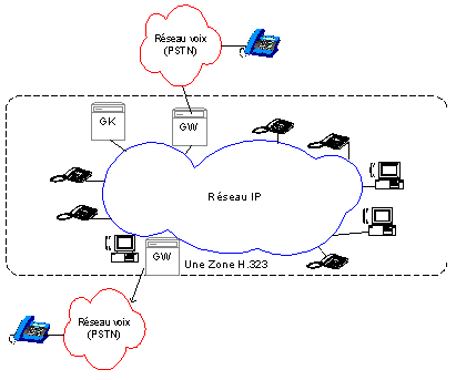 - Des Gateways dont le rôle principal est de réaliser la conversion TDM/IP mais qui participent aussi à l’établissement des connexions avec une Gateway distante sous le contrôle d’un Gatekeeper.