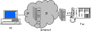 - Dans le cas d’une communication PC à Téléphone : il faut traverser une passerelle pour avoir l’interfonctionnement avec les réseau RTC. La communications dans ce mode est décomposée en deux parties :