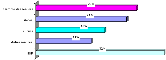 ATTENTES DES GRANDES ENTREPRISES EN FONCTION DES AVANCÉES TECHNOLOGIQUES : INTERNET Sur quels types de services Internet/Intranet/Extranet les entreprises attendent-elles des baisses substantielles de prix ? Les entreprises sont rares à avoir un avis sur la question, ce qui prouve que la politique Internet ne fait pas réellement partie de la stratégie télécommunications. La réponse la plus fréquente en matière d’attentes de baisses de prix concerne l’accès à Internet. Les entreprises souhaitent une baisse des tarifs qui doit s’accompagner d’une augmentation des débits. Les autres baisses de tarifs attendues concernent l’hébergement, la sécurité, les places de marché et les services infogérés.