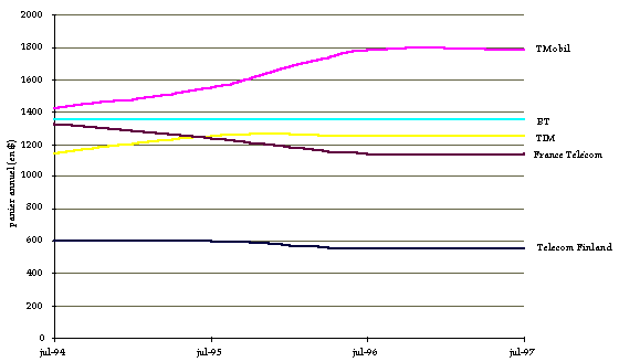 Perspectives d'évolution à moyen-terme du marché français du radiotéléphone / 3. Comparaisons internationales / 3.2 Les tarifs