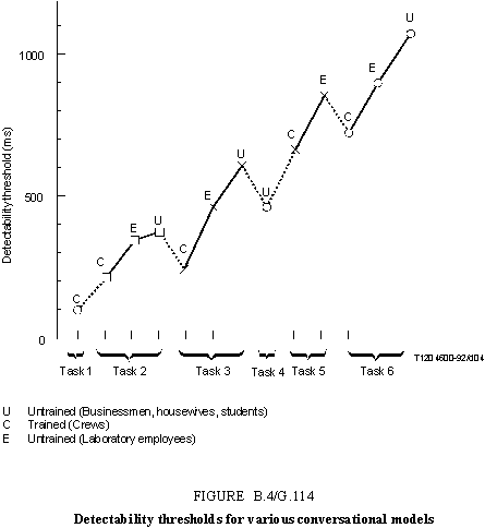Tests were conducted in 1991 by NTT in Japan, and reported in the ITU document G.114, One Way Transmission Time. The tests measured detectability of delay by three different populations: Untrained laymen (businessmen), trained crews, and untrained laboratory employees. Six different conversational styles were measured: