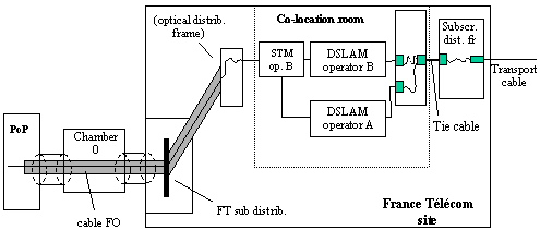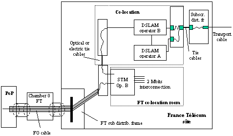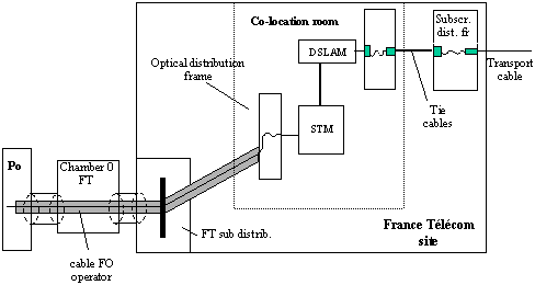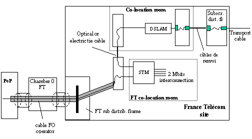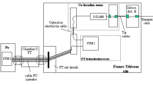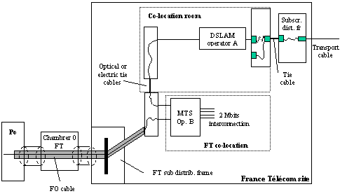 Recommendations from the Autorité de Régulation des Télécommunications (ART) for access to the local loop and its operational implementation / 30 October 2000 Annex 4: Pooling transmission links This annex contains a non-exhaustive list of the cases in which it is reasonable in principle to authorise the pooling transmission links for access to the local loop, in case of physical co-location. France Télécom can only justify refusal of such configurations on the grounds of certain specific local constraints. This annex does not deal with optic cable aspects of connection, which can also be pooled. 1) Transmission links deployed by the operator Use for unbundling of transmission equipment co-located for interconnection Deployment of transmission equipment in the co-location room for unbundling Use for interconnection of transmission equipment deployed in the co-location room for unbundling 2) Transmission links provided by France Télécom 3) Transmission links provided by third parties Use for unbundling by an operator A of transmission equipment deployed in the co-location room by an operator B Use for unbundling by an operator A of transmission equipment co-located for interconnection by an operator B present for unbundling in the co-location room. Use for unbundling by an operator A of transmission equipment co-located for interconnection by an operator B not doing unbundling. |