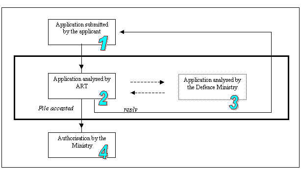 is not suitable for this type of experiments. The radio-electric installations shall use the extended spectrum technology based on the harmonised standard EN 300 328-2 of ETSI or any other standard recognised as equivalent. They shall function on the basis of non-jamming and without guarantee of protection. The effective isotropic radiated power (EIRP) transmitted by any network(3) equipment shall not exceed 10 mW on the entire 2400-2483.5 MHz band, conforming to European decisions. All projects in Metropolitan France shall be studied case by case by the Defence Ministry, so as to prevent a too high concentration of radiated power that may cause significant disturbances of the Defence Ministry equipment. As a result of limitation of power (EIRP), the limit of a network made up only through the RLAN technology shall be typically few hundred metres and shall not exceed a few kilometres in the best case The applicant may use the 2.4 GHz band for establishing a point to point link, provided the transmission of effective isotropic radiated power (EIRP) does not exceed 100 mW. If these conditions cannot be satisfied, he has to apply for an allotment of resources in an ad hoc frequency (a dedicated microwave frequency, for example) or use a wire based technology. The application file for authorisation shall contain technical information (Cf Appendix 1) concerning, in particular, the quality of services. The applications for experimental authorisation shall contain