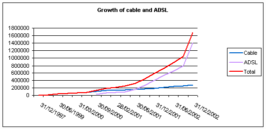 • Internet access by cable requires digitisation and technical upgrading of the networks. Today, it is available to 6 million outlets in 650 municipalities thereby serving close to 15 million inhabitants.