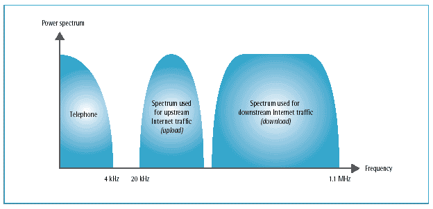 • DSL technologies use high frequencies on the copper pair connecting the subscriber to the telephone network, while low frequencies are used for voice. This means that DSL can provide Internet access while leaving the telephone line free.