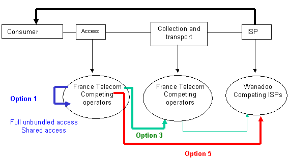 • Under either option 1 (unbundling) or option 3 (DSL traffic collection service by France Telecom on its local loop) operators must be able to propose ISPs ADSL traffic collection offers which can compete with those proposed by France Telecom (option 5).