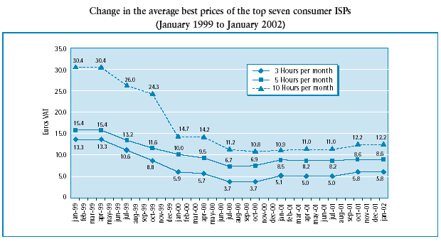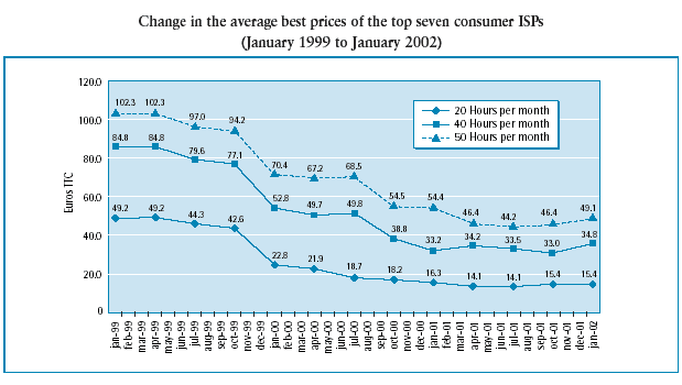 3.1 Low-speed access: prices falling constantly since 1998, now tending to stabilise