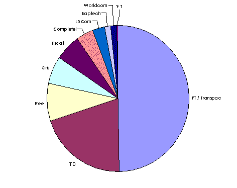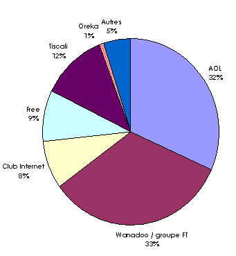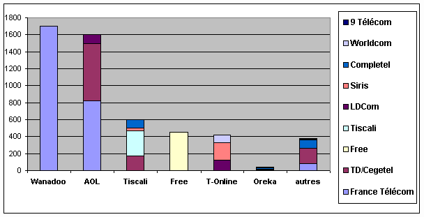 A fin 2001, le marché des FAI se répartit entre les opérateurs de la manière suivante :