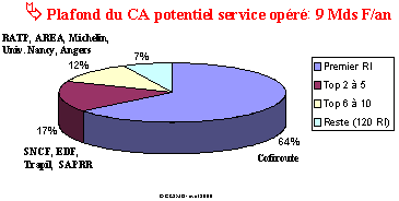 Ce sont les réseaux filaires qui constituent la part la plus importante du marché (¾) en terme de chiffre d’affaires potentiel total en service opéré (9 milliards). L’essentiel étant le fait de quelques très gros réseaux (dont certains sont antérieurs au 1er janvier 1997):