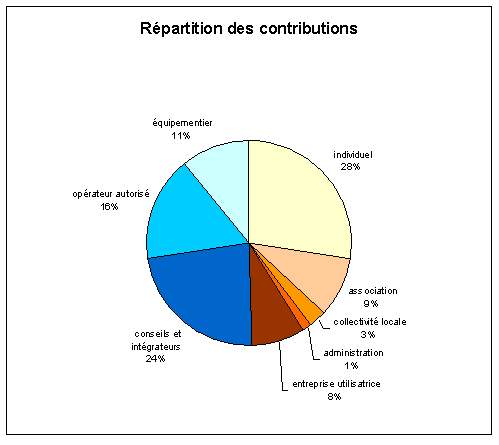 Il apparaît que les contributions sont réparties à parts sensiblement égales entre :