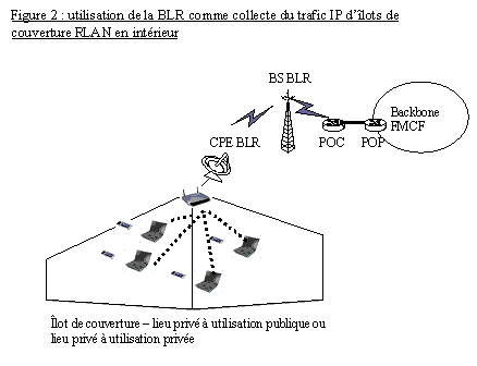 Des opérateurs de boucle locale radio sont intéressés par l’utilisation des technologies de type RLAN afin d'établir un réseau ouvert au public dans les villes où ils ne déploieraient pas leur technologie (dans les villes de moins de 50 000 habitants) . Ils estiment que les technologies de type RLAN sont complémentaires à la BLR ; celle-ci sera in fine la technologie idoine pour fédérer l’accès à Internet de ces différents réseaux RLAN isolés.