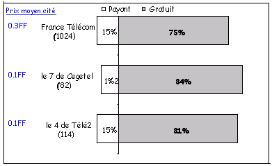 On relève notamment la forte percée du 4 de Télé 2 avec 7,8% de pénétration (contre seulement 2% l'an dernier), devançant le 7 de Cegetel. Le 7 a progressé également mais dans une moindre mesure : 6.9% de parts de marché en 2000 contre 5.1% l'an dernier. On constate également une progression de la représentativité de 9 Télécom : 2.1% contre 0,8% l'an dernier. L'ancienneté de la relation avec le nouvel entrant est logiquement liée à leur date d’entrée sur le marché : 50% des abonnements à Cegetel, premier concurrent à être entré sur le marché, ont été souscrits il y a un an et plus, alors que 43% des abonnements à Télé 2 et 40% des abonnements à 9 Télécom ont été souscrits dans les six derniers mois. Motifs du changement d’opérateur