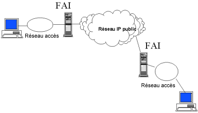 Une communication de transfert de la voix sur IP, dans un environnement hétérogène au niveau de l’accès et du transport, peut s’établir grâce à plusieurs types de réseaux basés sur des technologies IP ou à commutation de circuits.