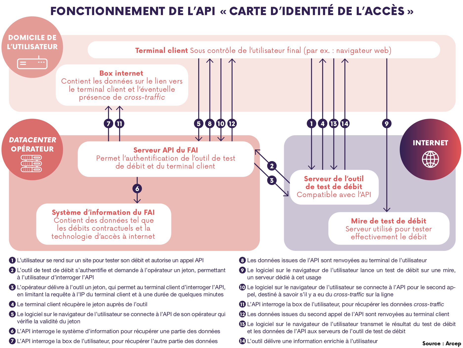 L’ARCEP prévoit également de mettre en place un dispositif de mesure de la qualité du service fixe d’accès à l’internet. L'Autorité a souhaité un dispositif défini en concertation avec tous les acteurs concernés, fondé sur des mesures effectives dans des conditions rigoureuses, contrôlées et identiques pour tous les opérateurs. Ce dispositif permettra d’établir des comparatifs entre opérateurs, en s’affranchissant notamment des biais associés à l’environnement matériel (équipement, installation, etc.) des clients finals. Les résultats des premières mesures seront publiées dans le courant de l’été